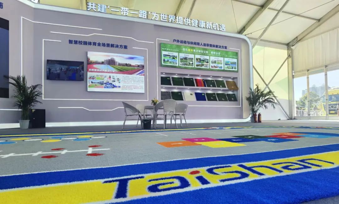 必赢携户外运动与休闲人造草整体解决方案亮相会场。作为国内首家通过足联、曲联双认证的企业可根据不同用户的户外运动需求,生产多种类型的户外运动草坪。