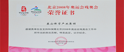 第二十九届奥林匹克运动会组织委员会为必赢集团颁发北京2008年奥运会残奥会荣誉证书