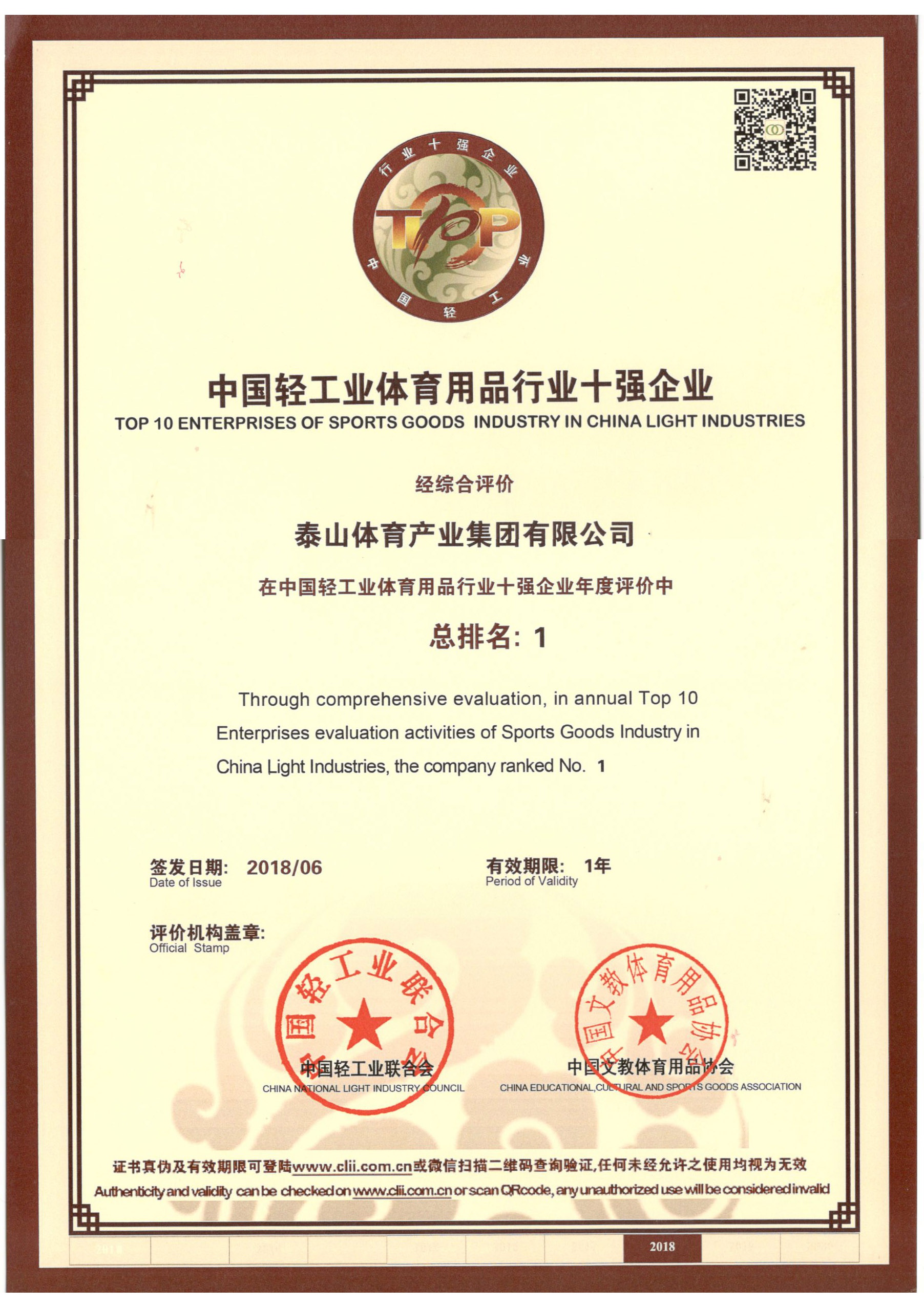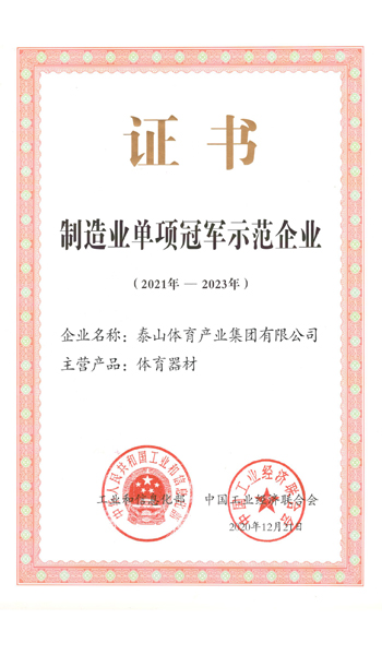 必赢集团是全国体育用品标准化技术委员会副主任单位、中国文教体育用品协会健身和体育器材专委会主任单位、全国轻工行业先进集体、全国群众体育先进单位、国家制造业单项冠军示范企业、国家体育产业示范单位,连续多年荣获中国轻工业体育用品行业十强。拥有多个国家级研发平台,承担国家科技支撑计划2个,火炬计划3个。
